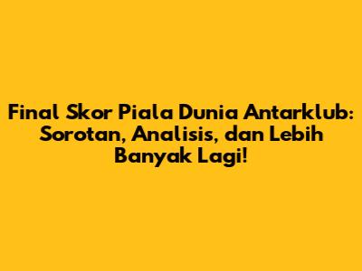 Final Skor Piala Dunia Antarklub selalu menjadi puncak dari sepak bola klub internasional, mempertemukan juara dari berbagai konfederasi untuk memperebutkan gelar klub terbaik di dunia. Pertandingan ini tidak hanya menawarkan aksi sepak bola kelas dunia, tetapi juga cerita-cerita menarik tentang keberhasilan, kegagalan, dan momen-momen yang tak terlupakan. Mari kita selami lebih dalam tentang final Piala Dunia Antarklub, melihat sejarahnya, tim-tim yang berpartisipasi, dan tentu saja, skor-skor yang paling berkesan.